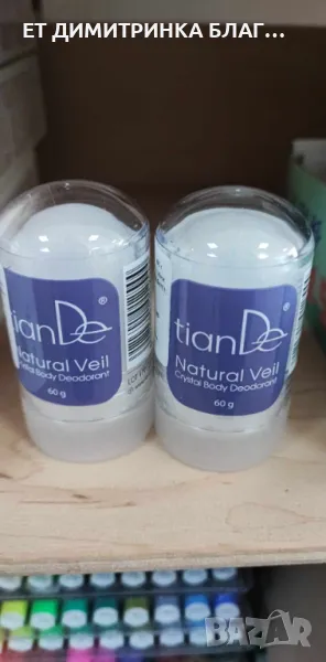 Natural Veil – кристален дезодорант от алунит може да се използва като стик против изпотяване, а също така помага при акне, ухапвания, херпес,гъбички и др.