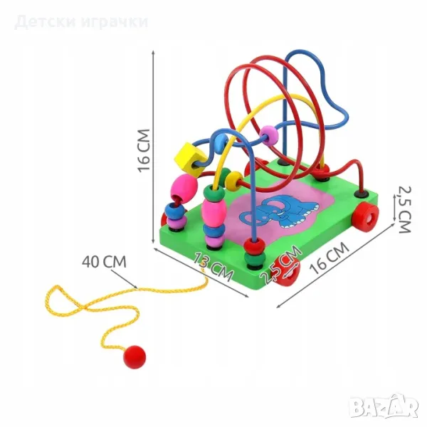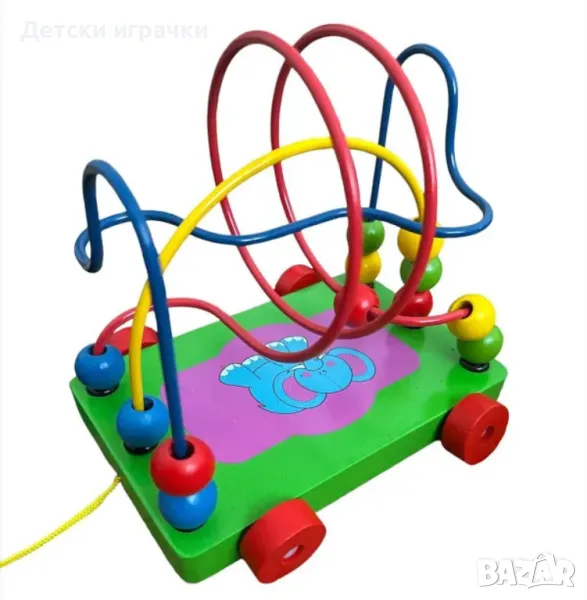 Играта с дървен лабиринт на колела включва тъкане на цветни дървени мъниста върху жица. Противно на изявите, това не е проста задача и изисква логично мислене.