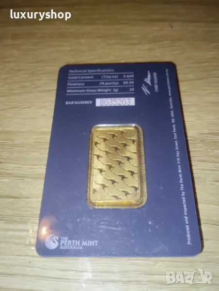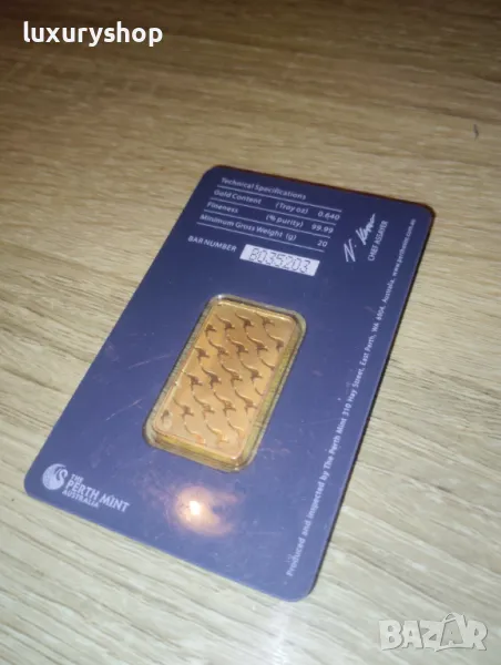 БЕЗПЛАТНА ДОСТАВКА! Златно кюлче 20 грама Perth Mint