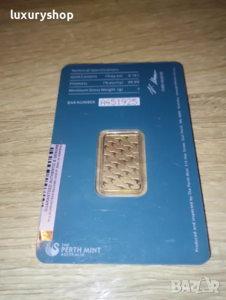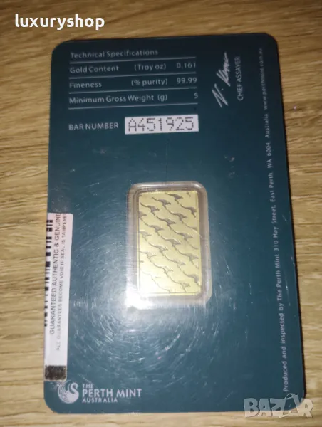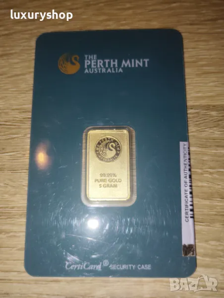 БЕЗПЛАТНА ДОСТАВКА! Златно кюлче 5 грама Perth Mint