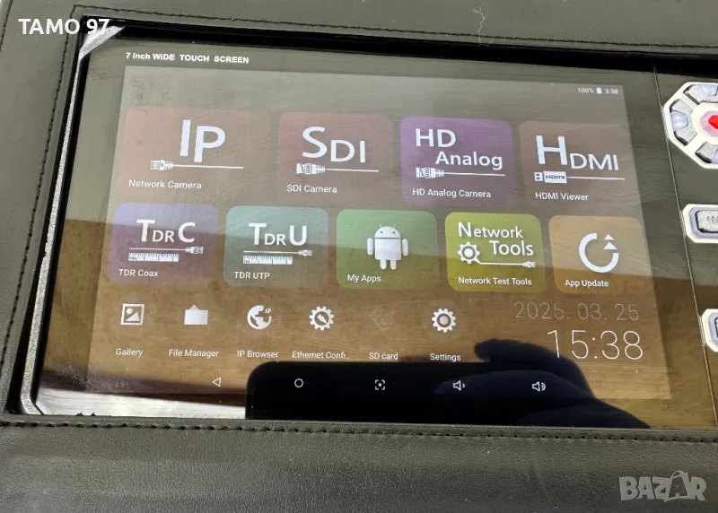 Продавам професионален многофункционален тестов IP монитор 7'' с тъч дисплей и операционна система на andoid. Комплекта е като нов все още, както се вижда на снимките и използван броени пъти. SC-IPM07PRO осигурява лесна инсталация и поддръжка на различни камерни системи като IP, HDMI, AHD, TVI, CVI, 3G-SDI, HD-SDI, EX-SDI и CVBS от единствен потребител, което прави възможно извършването на видеонаблюдение, PTZ контрол на камерата, мрежова настройка на камерата и още много функции. В допълнение, SC-IPM07PRO осигурява страничен DVR тест, като има HD (цифрови) входни и изходни портове и измерва състоянието на сигнала и фокуса повече точно с вградените измерватели на ниво/фокус, включително HD-аналогови сигнали. Оригинално корейско производство, внос от Франция. Пращаме с опция преглед и тест с куриерска фирма еконт може и лично предаване за гр. Шумен.