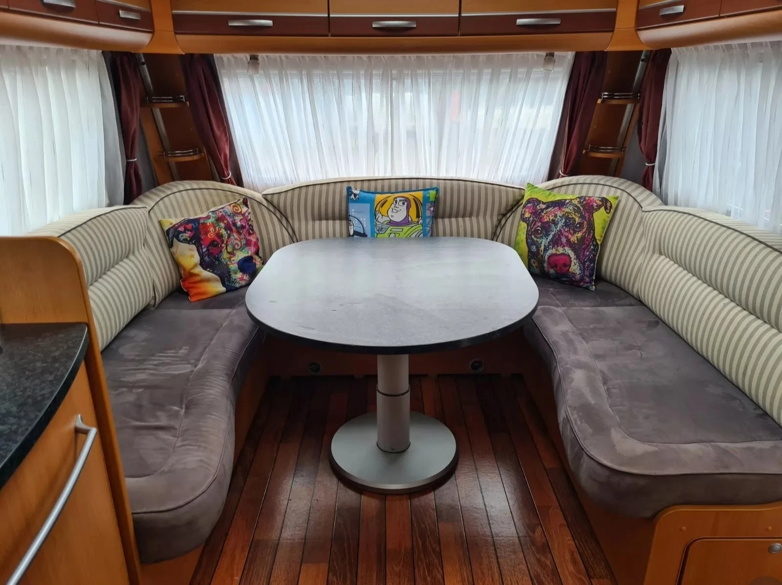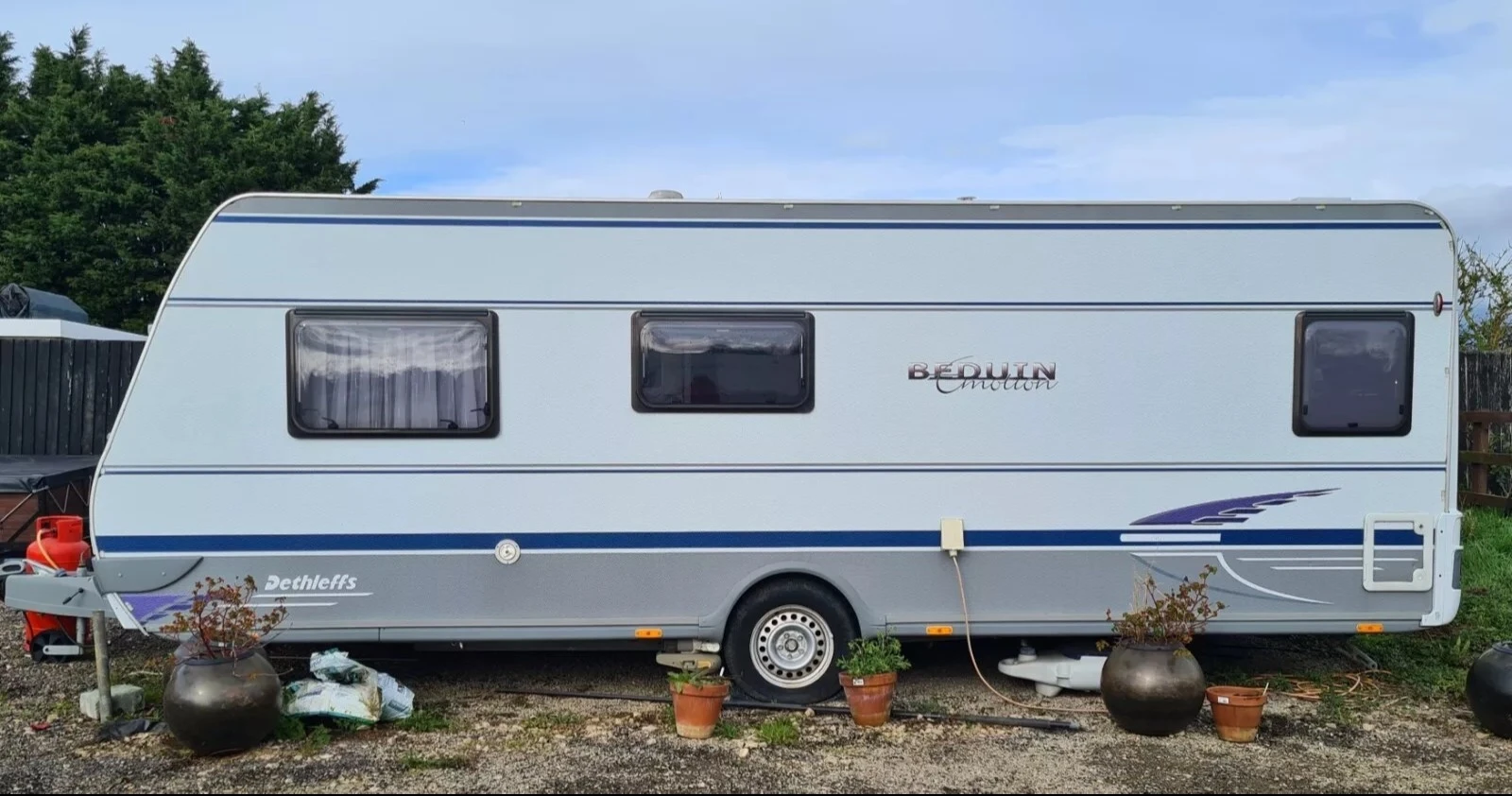 Тази Dethleffs BEDUIN EMOTION 2007г. Каравана е перфектна за твоето следващо къмпинг преживяване. Спален капацитет от четир места, включва газови котлони, мивка, хладилник с отделна фризер камера, баня с тоалетна, 240V осветление, 12V осветление външна барбекю точка на газ и ток. Включен е същотака и вятъроустоичив форсет с тръбна конструкция. Ако имате още въпроси моля звънете на Viber или WhatsApp на Английския номер понеже съм извън страната. За огледи на Българският номер