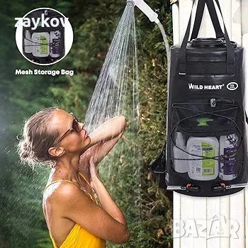 WILD HEART Къмпинг душ 22L/ 12L Преносим душ за къмпинг с напорна крачна помпа и маркуч