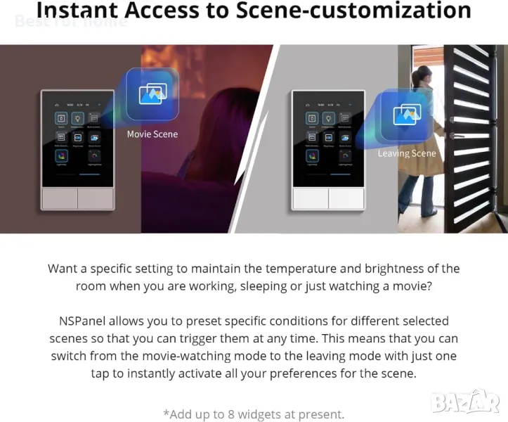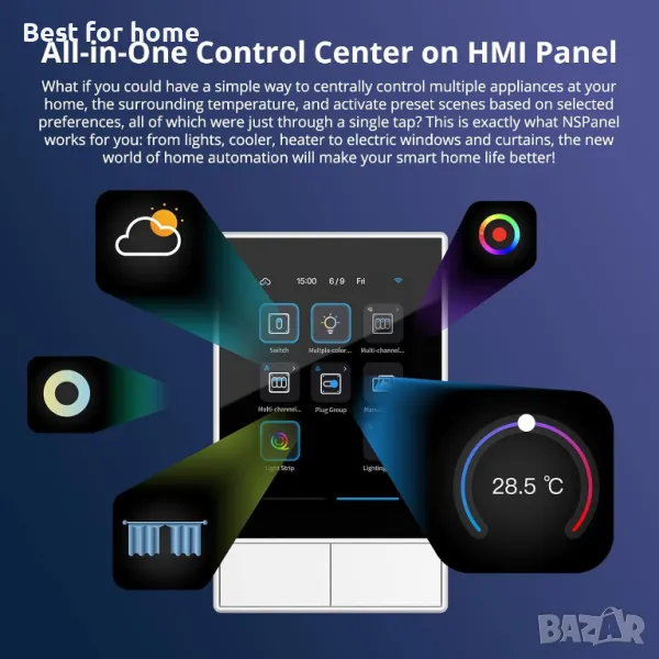 Имате ли нужда от едно устройство за централно управление на множество електрически уреди във вашия дом, от осветление, нагреватели, охладители, завеси, врати и прозорци? Невъобразимо!! NSPanel може да контролира всички тези устройства, като предлага интегриран HMI панел за домашна автоматизация, който е супер удобен, всичко, което трябва да направите, е - едно докосване.