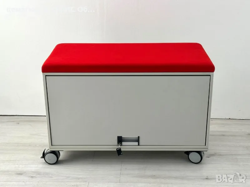Предлагеме немски шкаф модулна система steelcase Flexbox бяло с бял капак червена платена възглавница за седалка