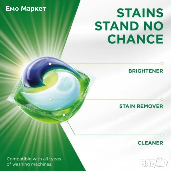 Мощно почистване: ефективно отстранява упорити петна и мръсотия, дори в студена вода;