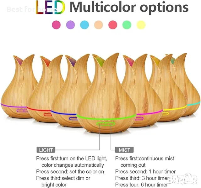400ml Ароматерапевтичен дифузер: Azazan дифузер работи до 10 часа непрекъсната ниска мощност, подходящ без презареждане. Автоматично изключване, когато водата изтече, гарантира безопасността. Възприетата ултразвукова технология (под -36dB), работи стабилно и безшумно, осигурява ви тиха и удобна среда.