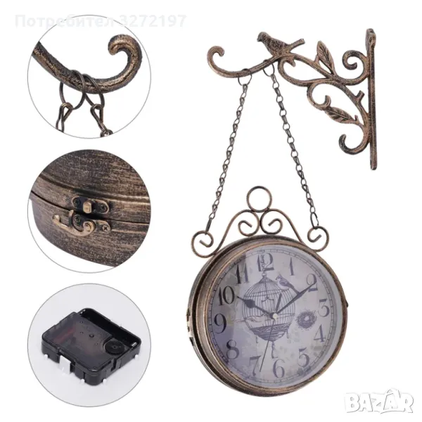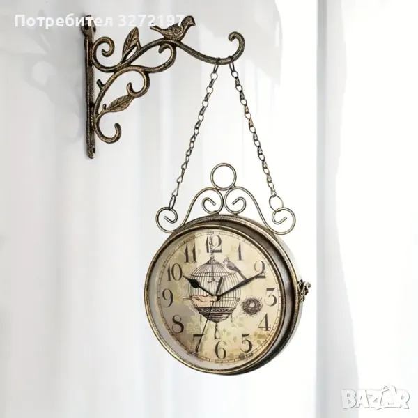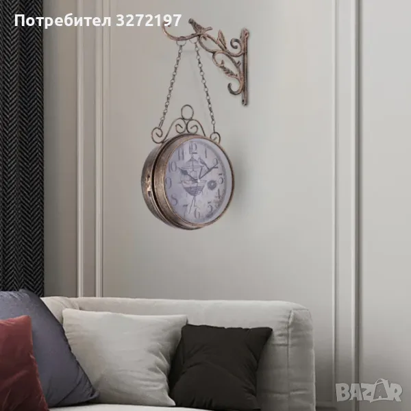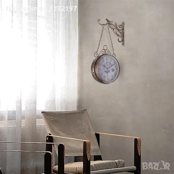 Винтидж двустранен безшумен стенен часовник Декоративен часовник.