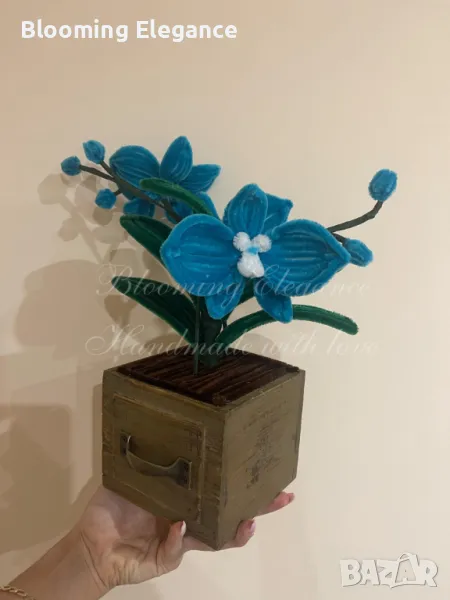 Орхидеята – символ на любов, изящество и хармония, сега в ръчно изработен вариант от плюшена тел. Всеки детайл е създаден с внимание и любов, за да бъде този цветен шедьовър вечен!