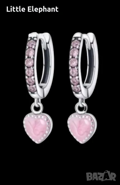 Сребърни висящи обеци сърца с кристали,2 kind,pink/нови → Обява 49770767