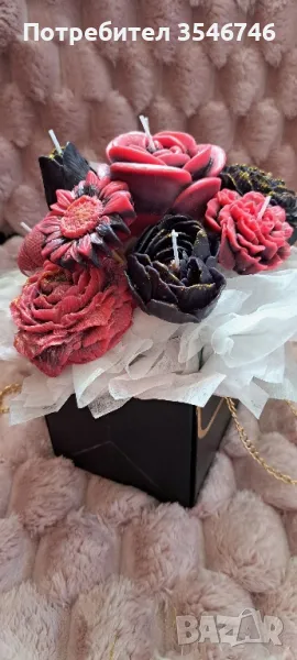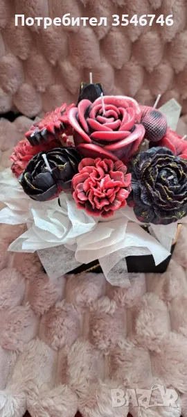 Красив елегантен букет от ароматни соеви свещи. Подходящ подарък за предстоящите празници и балове.