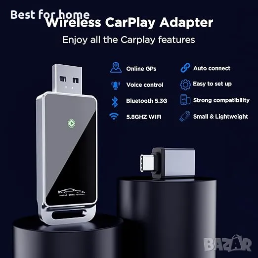 2024 Нов безжичен адаптер за CarPlay: Надстройте своя кабелен CarPlay до безжичен с лекота. Не са необходими приложения или драйвери. Насладете се на музика, GPS, гласов асистент, съобщения и обаждания без никакви кабели - само безпроблемна свързаност