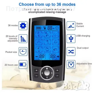 Мускулен стимулатор Tens 36-режимен електрически EMS Акупунктурен масаж на тялото Дигитална терапия Машина за отслабване Електростимулатор