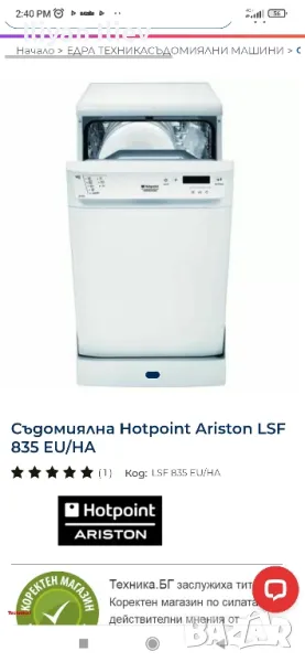 Съдомиялна Ariston Hotpoint LSF 835 на части → Обява 49771857