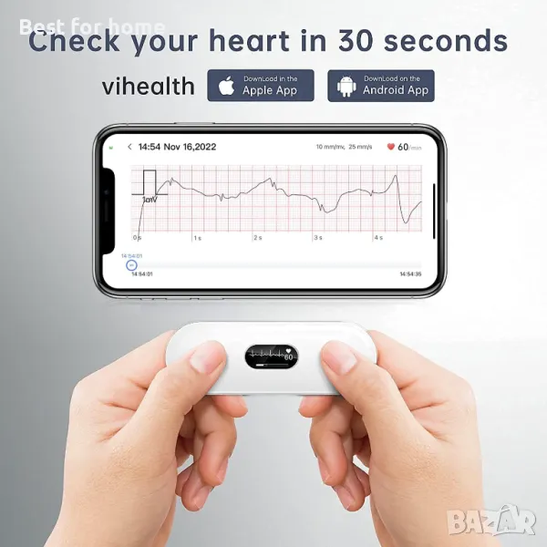 Лек и преносим: Компактният дизайн ви позволява лесно да наблюдавате сърцето и пулса си у дома, докато пътувате или на работа. Времето за запис от 30 секунди до 5 минути позволява бърз преглед и детайлен запис.