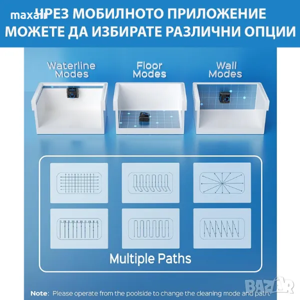 – Мобилно приложение (* можете да променяте режима на почистване, когато роботът не е във водата)