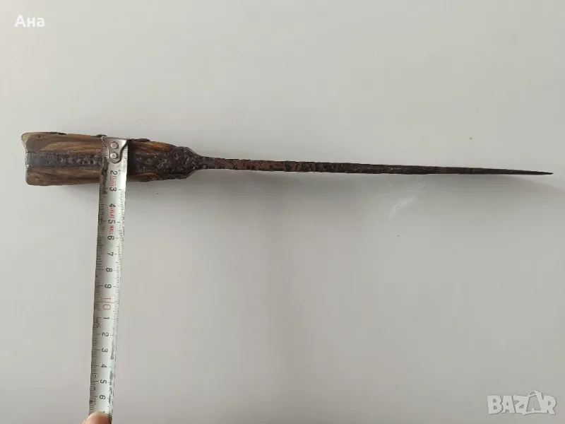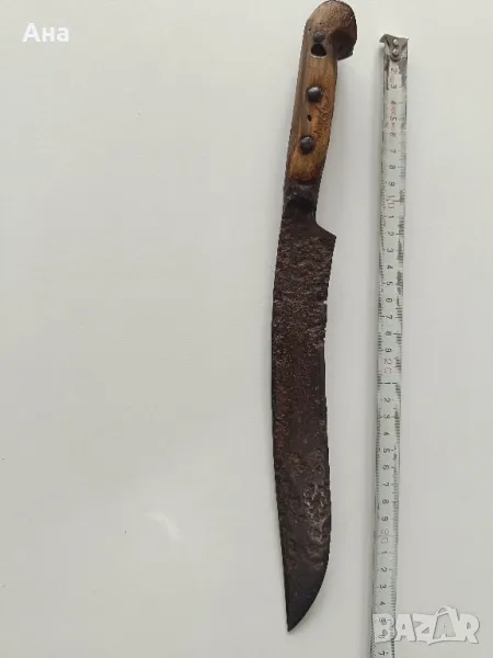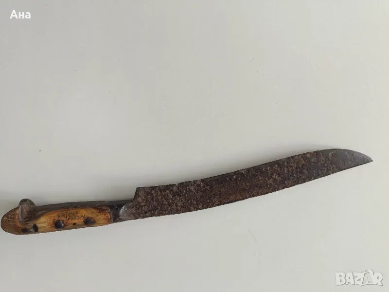 Български кован нож каракулак, 36 см с дръжка от биволски рог, масивен и тежък ..Дебелина на острието в основата 0.5 мм