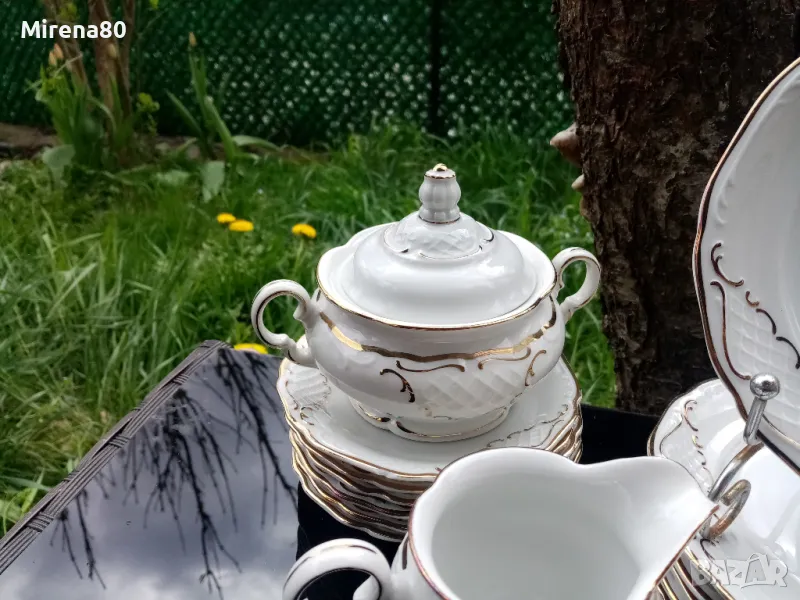 Представям ви един наистина разкошен бароков сервиз, произведен втората половина на миналия век в Бавария. * Zeh Scherzer * - фабрика с традиции и име в сета на порцелана, синоним на качество и класа. Сервизът е класическа комбинация от бял фин порцелан с позлата и страхотен релеф - лично аз обожавам релеф върху порцелана, чуството да го докосваш е невероятно. Това е сервиз, който винаги ще е на мода и ще впечатлява - достоен за всяка трапеза и повод. Всички части са като нови, блестят !