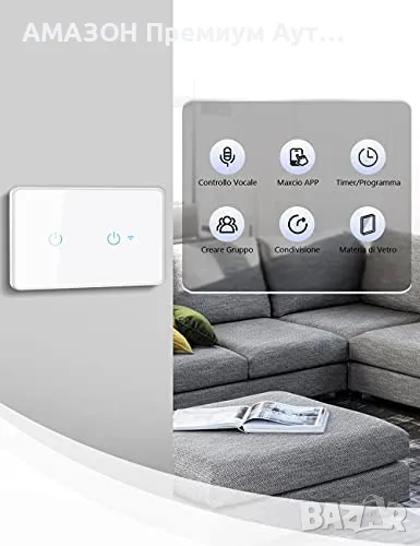 WiFi стенен троен превключвател за осветление Maxcio гласово/дистанционно/сензорно управление,Alexa