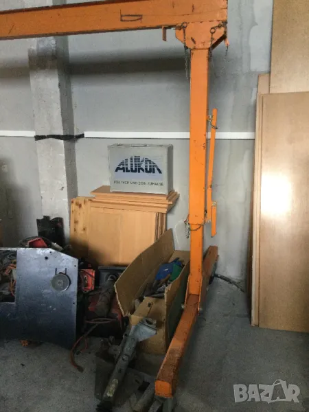 Портален кран до 1000 кг. Подвижен и много удобен за работа с тежки елементи.