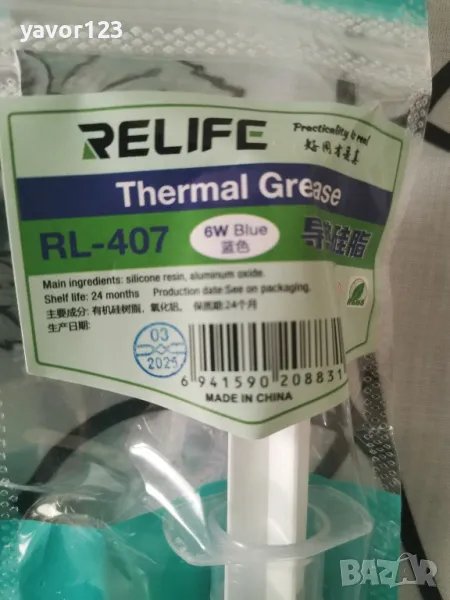 Relife RL-407 – Висококачествена силиконова термична паста за ефективно охлаждане на електронни компоненти.