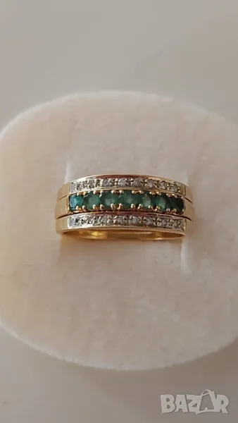 Златен пръстен с изумруди и брилянти → Обява 49774859
