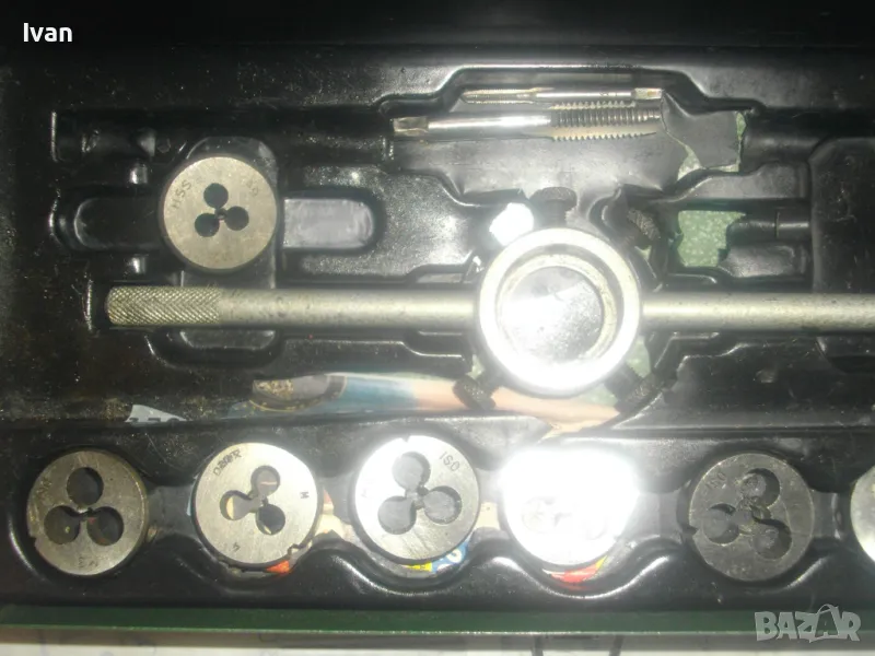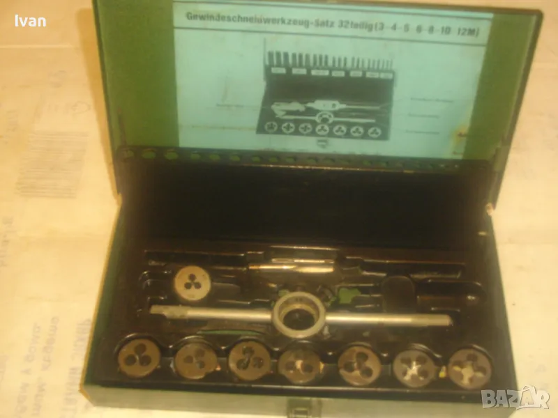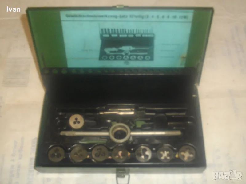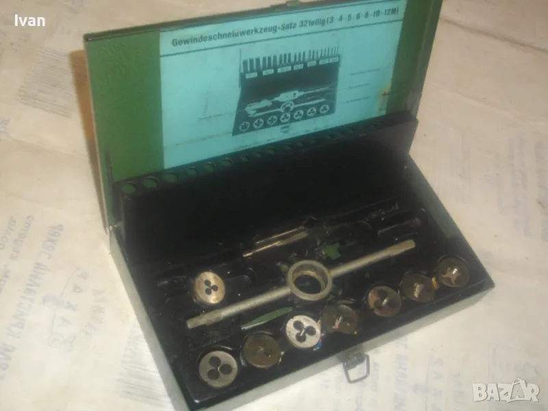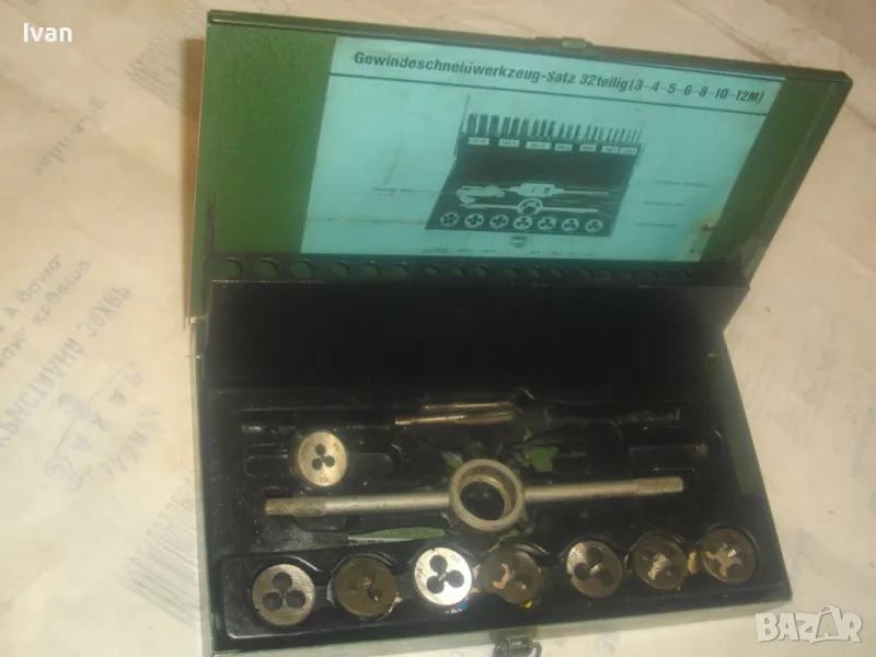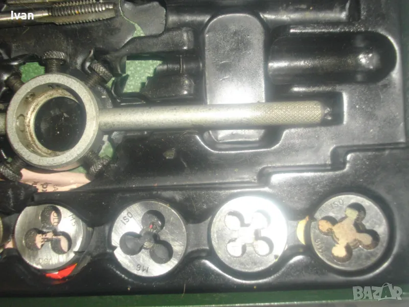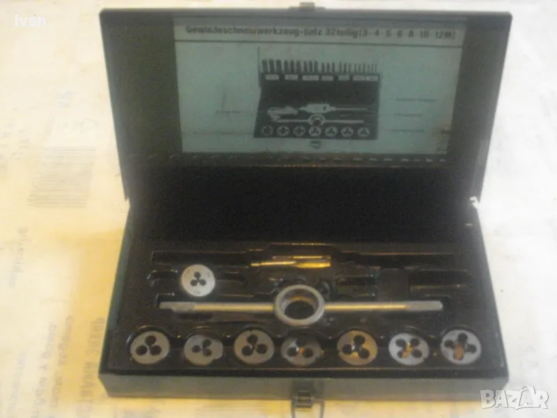 ОПИСАНИЕ на комплект метчици и плашки размери М3 до М12 в метална оригинална кутия - цена 59 лв. Непълен комплект /плашките са налични, метчици само 2 бр/. В метална оригинална кутия с размери