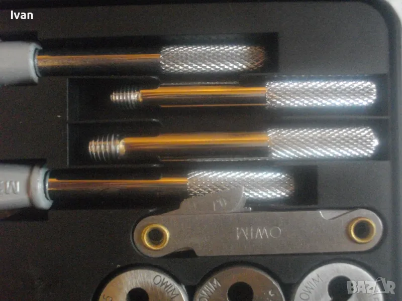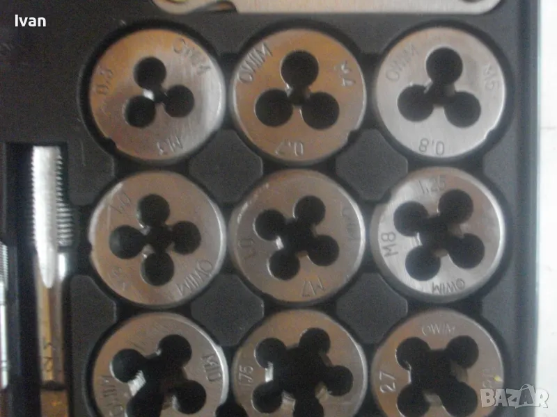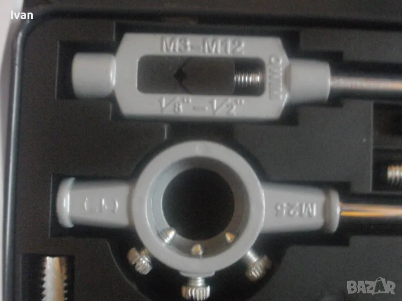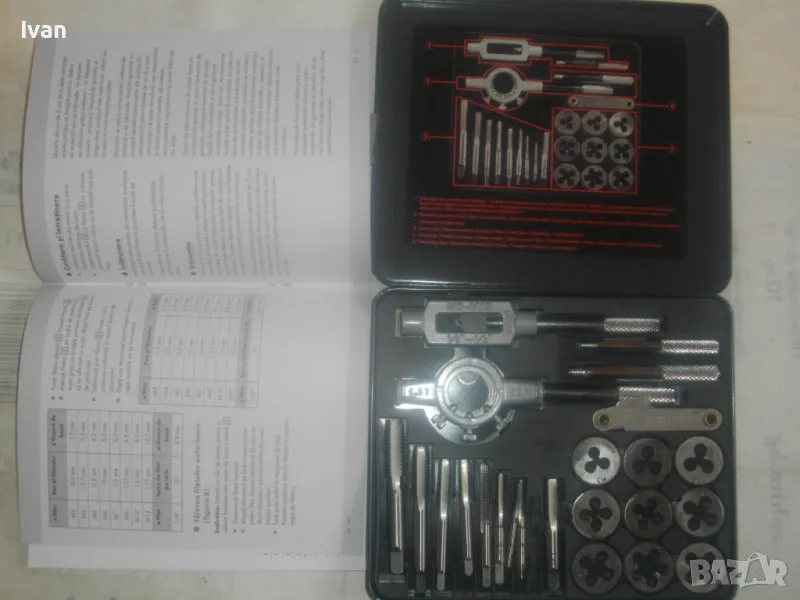 плашки за производство, ремонт и корекция на метрични ISO резби в прецизно изпълнение. За вътрешни и външни резби, вкючително ръководство за употреба и резбомер. Комплектът е прибран в оригинална метална кутия.