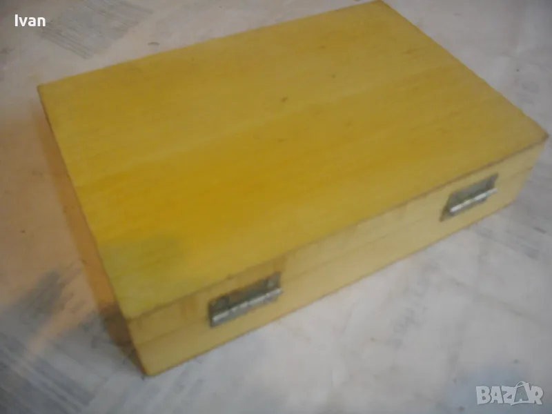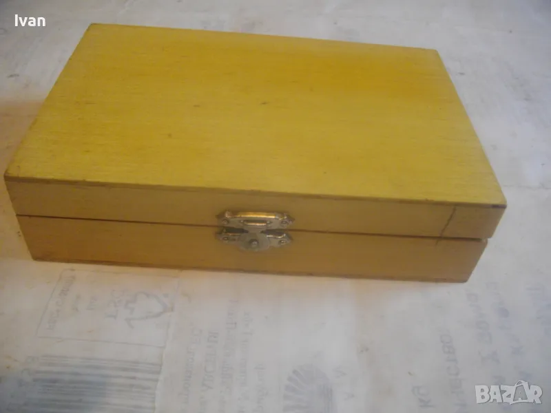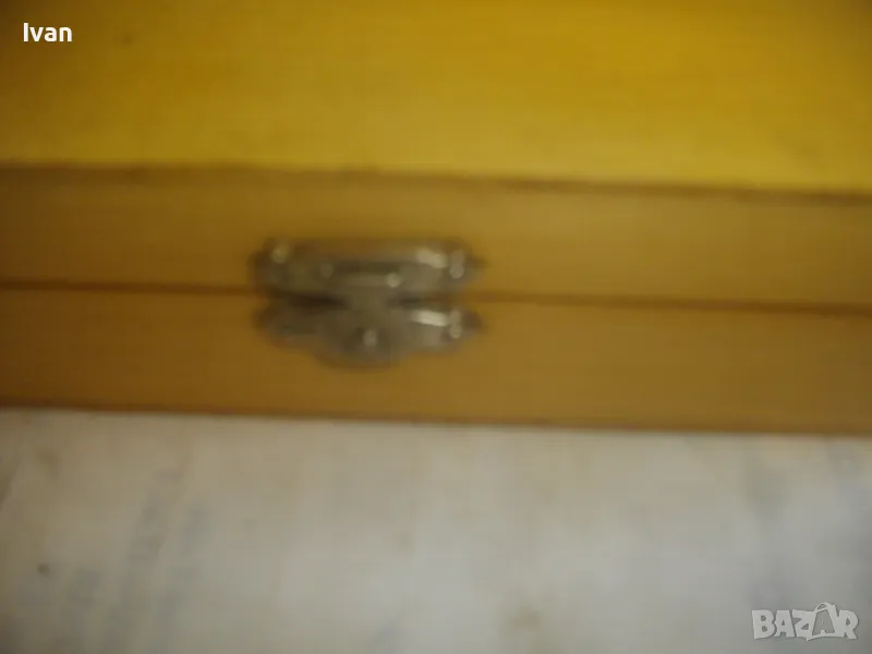 Комплекта е прибран в оригиналната си дървена кутия от ПДЧ - лакирана, с метална копчалка.