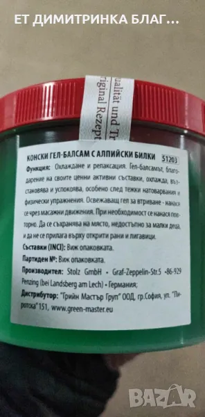 Конски гел с алпийски билки ☎️ ПРИ БОЛКИ И ДИСКОМФОРТ В МУСКУЛИТЕ И СТАВИТЕ!