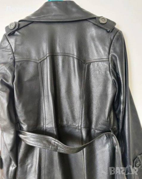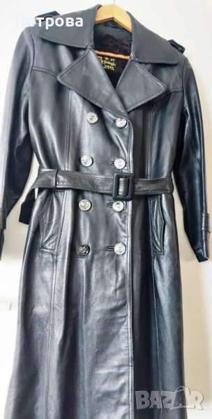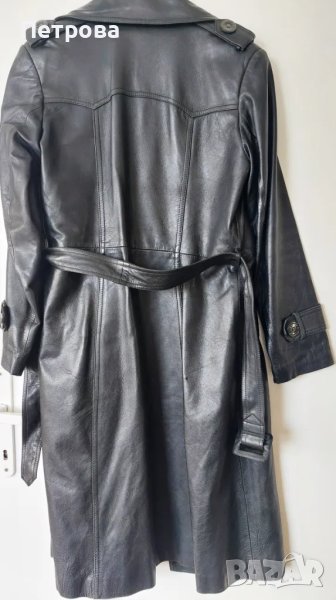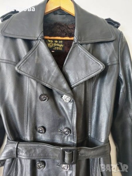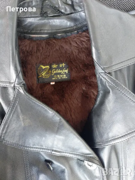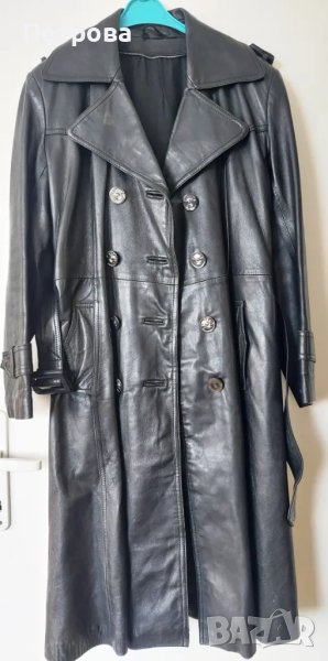 Кожено манто, от телешки бокс, с топла подплата, която може да се маха, ново. № 38 по европейските стандарти. Измерено – в раменете 46 см, гр. об. 97 см, талия 90 см, дължина 105 см, дължина на ръкава 60 см, с оригинални детайли на раменете и ръкавите, красиви копчета, двуредно, с колан и два джоба, с топла подплата, която може лесно да се сваля или закачва с помощта на цип, естествена кожа, красив дизайн, раздвижена кройка. 44-46 размер L. Цена 400 евро. Изпраща се с 10% отстъпка от общоприетата куриерска такса.