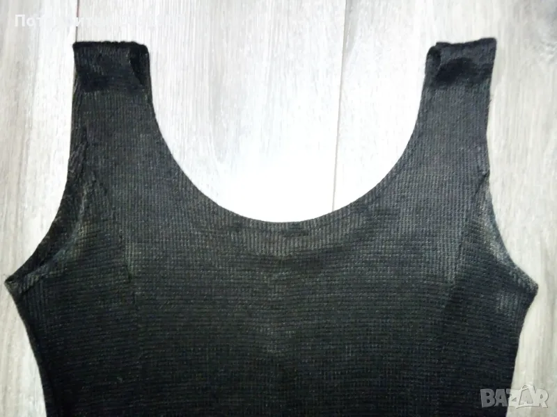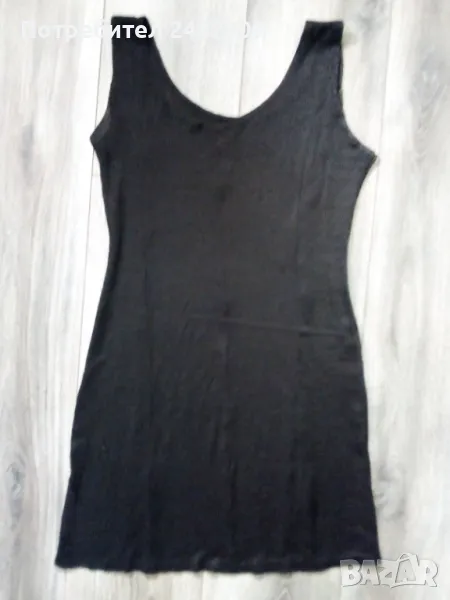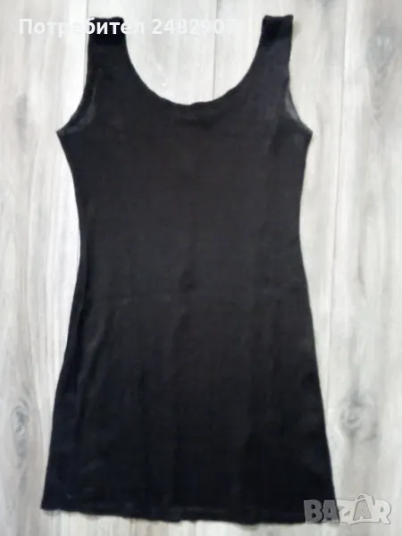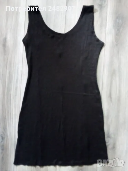 Тъмно кафява къса дамска рокля, размер S. Ширина в раменете - 30 см, ширина под мишниците - 40 см, ширина в долната част - 47 см, дължина от рамото до долу - 76 см. Много запазена, почти не е използвана, със забележка, видима от снимките - леко обезцветяване под мишниците
