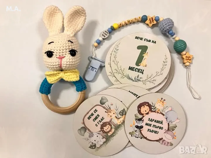 За малко любимо човече - ръчно изплетени играчка и дрънкалка.