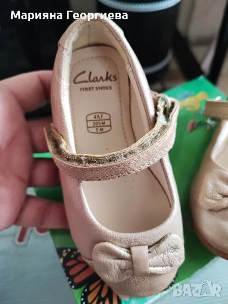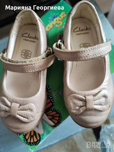 Детски обувчици за малко момиченце. Естествена кожа. Марката Clarks. Цвят телесен. Стелка измерена от мен 13см.