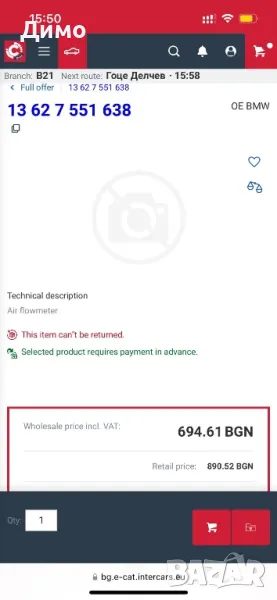 дебитомер бмв е60 е61 bmw e60 e61 → Обява 49782865