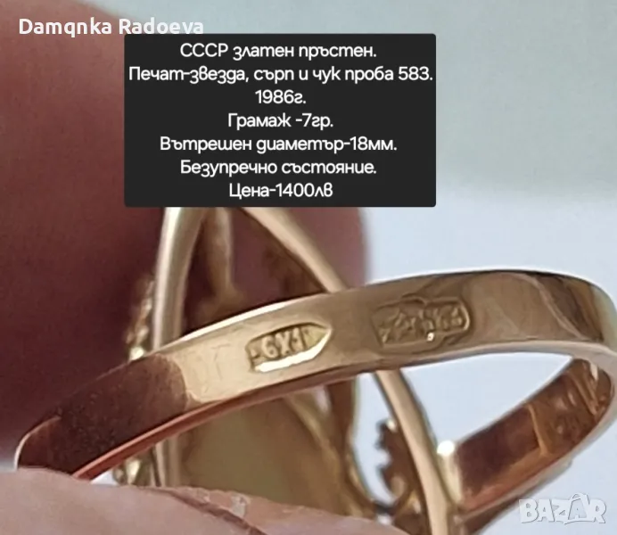 СССР златен пръстен проба 583 14 карата → Обява 49783412