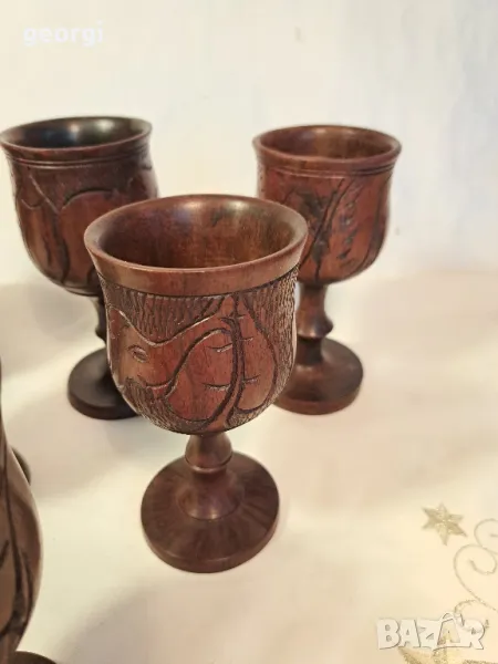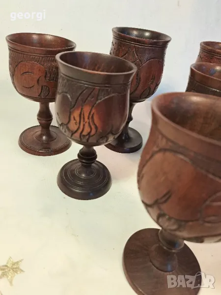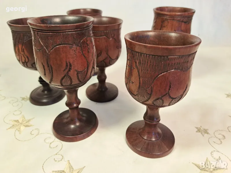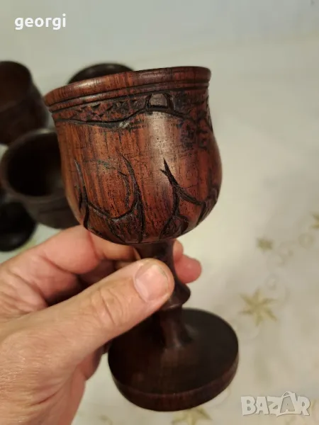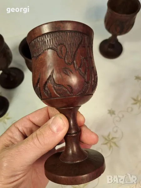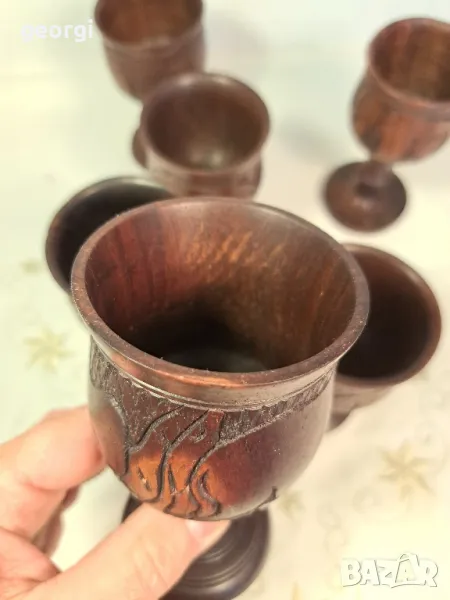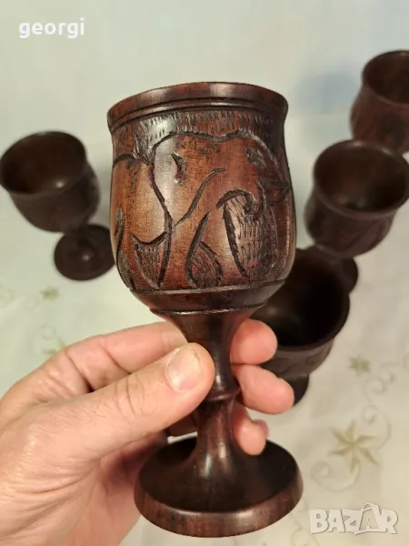 Чашите са ръчнорезбовани от масивно дърво абанос.