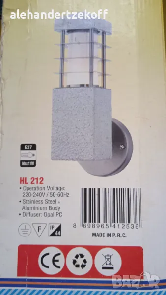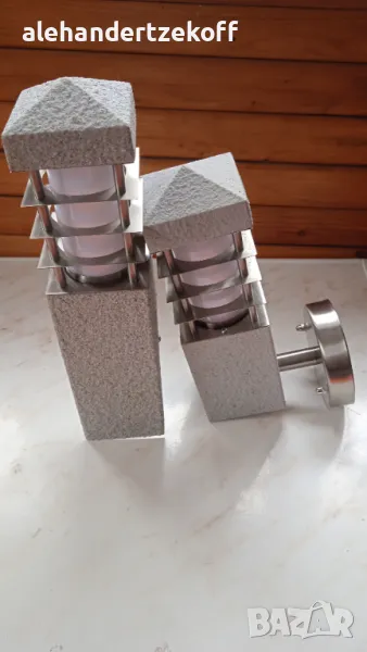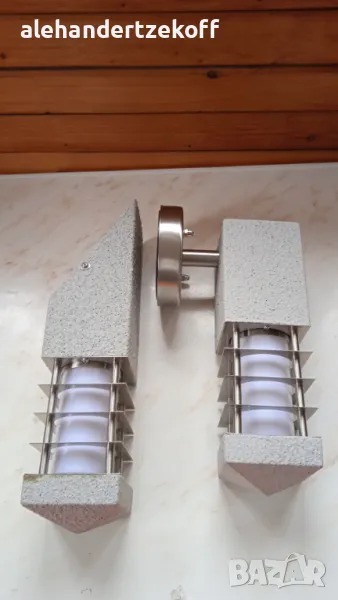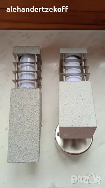 Лампите са на фирмата HOROZ, изработени са от неръждаема стомана и алуминий. Външното им покритие е от специален материал - Opal PC, наподобяващ декоративна мазилка. Цената на модел HL 212 e 120 лв за брой - 4 бр. Цената на модел HL 211 е 110 лв за брой - 3 бр. Цената може да се коментира.