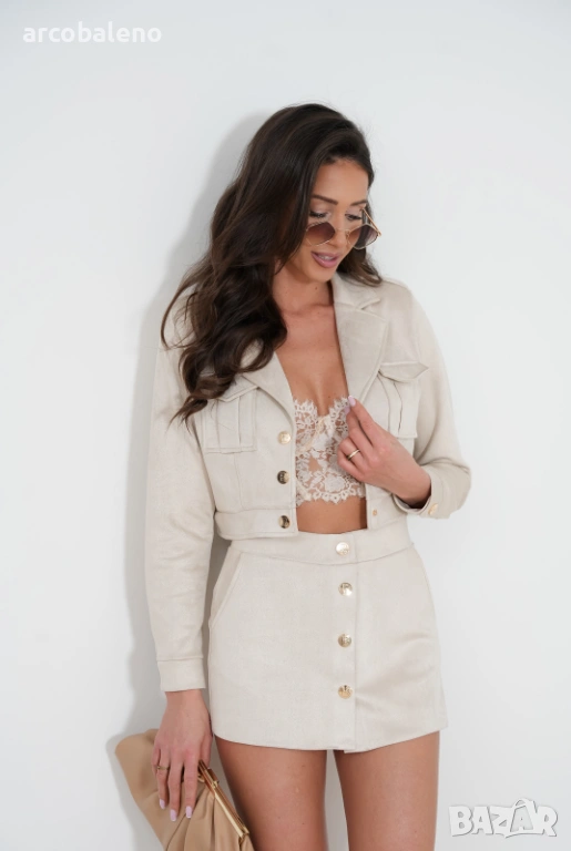 Дамски елегантен комплект BLISS с яке и пола/къси панталони.
