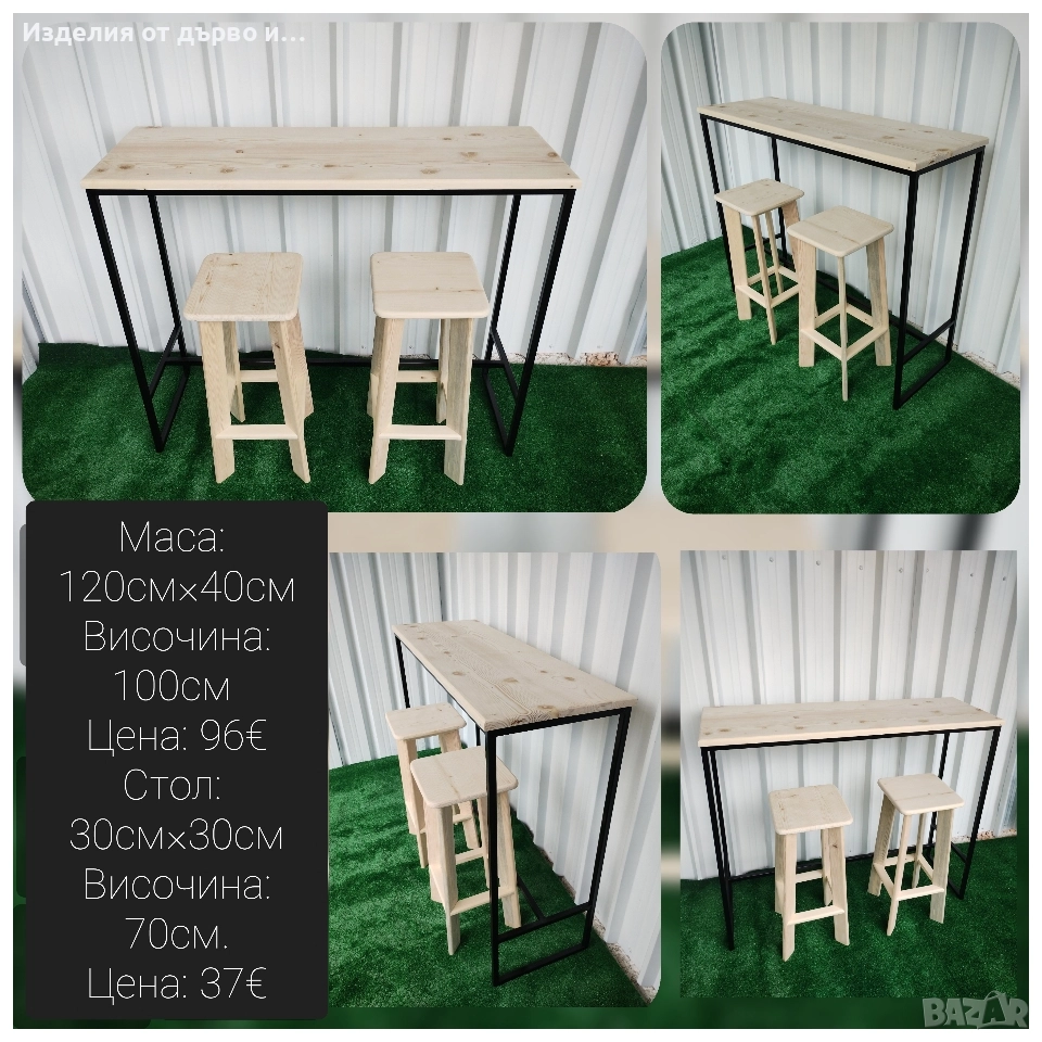 Маса и столове от дърво и метал масивно дърво без ПДЧ здрава заварена метална конструкция
