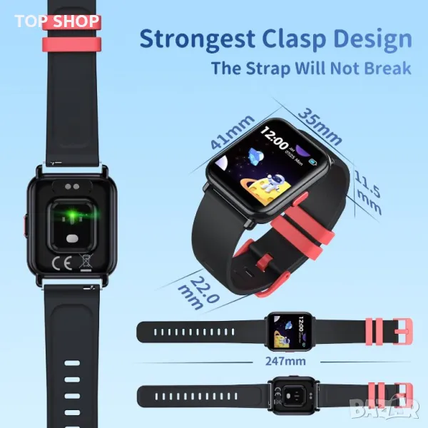 Този смарт часовник за деца разполага с вграден сензор за сърдечен ритъм и поддържа 24-часово наблюдение на телесната температура и сърдечната честота, заедно с автоматично проследяване на съня. Той предоставя ценни здравни данни чрез мобилно приложение, което ви помага да сте информирани за благосъстоянието на вашето дете. С хидроизолация IP68, той е идеален за различни спортни дейности, проследяване на стъпки, сърдечен ритъм, калории и разстояние, като същевременно насърчава участието в спортове. Часовникът включва интелигентни напомняния за задачи и дейности, крачкомер и е изработен от безопасни, нетоксични материали с 1,4" сензорен екран и циферблати с възможност за персонализиране, което го прави идеален подарък за деца на възраст 3-12 години. Съвместим с iOS 11.0/ Android 5.0 и по-нови, той предлага допълнителни функции като хронометър, таймер, игри, прогноза за времето, фенерче и поддържа седем езика, подобрявайки неговата полезност и забавление за децата.