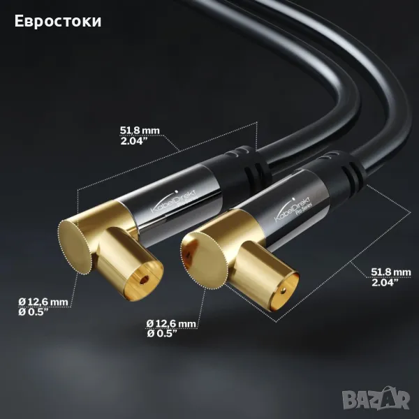 CableDirect – 2x 4K Коаксиален кабел, TV кабел 90° ъглови конектори – TV кабел с устойчиви на счупва