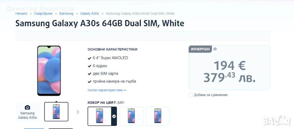 Смартфон Samsung Galaxy A30s в много добро състояние → Обява 49785938
