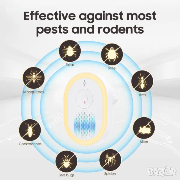 Ultrasonic Комплект ултразвукови репеленти за вредители 6 бройки с 4 режима, за, репелент за насеко