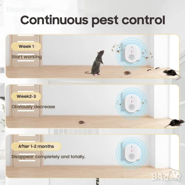 Ultrasonic Комплект ултразвукови репеленти за вредители 6 бройки с 4 режима, за, репелент за насекоми, за мишки, плъхове, контрол на вредителите.