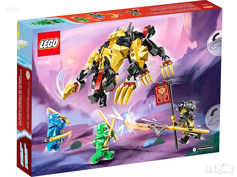 Включващ страховита играчка чудовище и 3 минифигури, комплектът за игра „Имперска хрътка ловец на дракони (71790)“ осигурява на децата всичко необходимо, за да се насладят на безкрайни, изпълнени със забавления часове, докато разиграват смели битки от телевизионния сериал NINJAGO® Dragons Rising. Представеният за първи път през юни 2023 г. звяр Фотак има подвижна глава, опашка и крака, както и впечатляващи нокти и шипове. Комплект за игра, изпълнен с минифигури и страхотни аксесоари Комплектът за игра