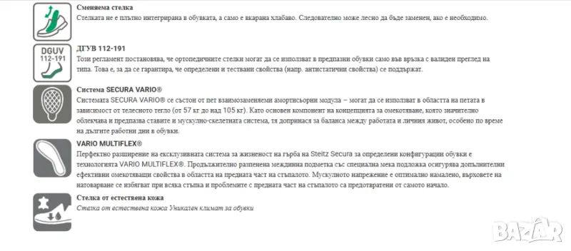 Предпазният сандал Steitz Secura VD Pro 1010 ESD съчетава високи стандарти за безопасност с изключителен комфорт и модерен дизайн. Този модел се предлага в размери от 36 до 47 и се отличава с атрактивна черно-сребристо-сива цветова схема. Сандалът е изработен от ултра лек микрофибър и има голяма вентилационна структура, която заедно с дишащата функционална подплата осигурява оптимална циркулация на въздуха и управление на влагата.
