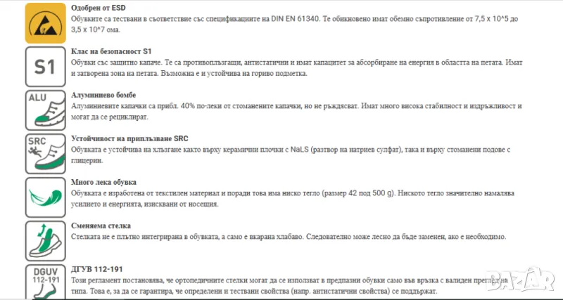 Алуминиевото бомбе и външната подметка TPU Athletic ESD, които отговарят на стандарта EN ISO 20345:2011 S1 SRC, гарантират безопасност на работното място. Закопчаването с велкро позволява бързо и индивидуално регулиране. В допълнение, комфортната подложка на крака с омекотяващ ефект осигурява приятно изживяване при носене, докато стелката от естествена кожа увеличава издръжливостта на обувката. Стелката е сменяема и може да се регулира ортопедично според DGUV 112-191, което прави сандала подходящ и за индивидуалните нужди на крака.