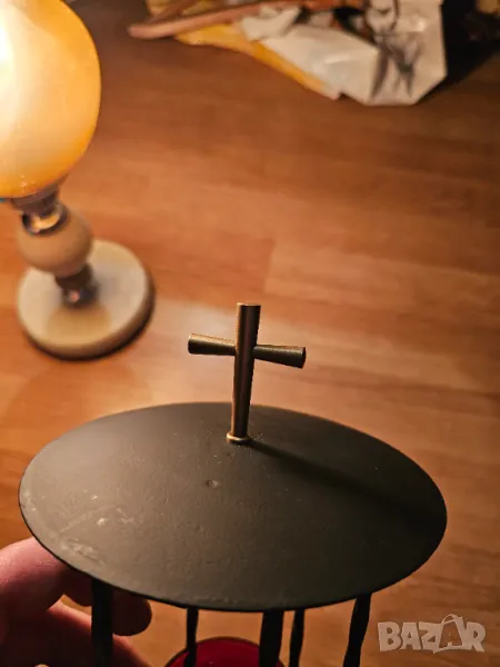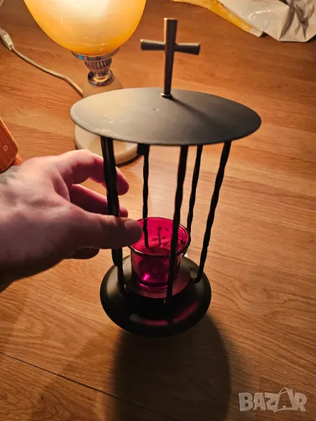 кандило от ковано желязо, бронз и кръст за да се помолите на Бог Исус Христос и нека той да бъде Вашия защитник