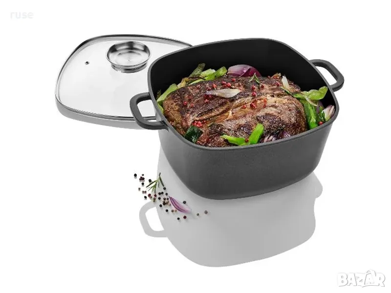 НОВИ! Ростер квадратен тиган с капак и дозатор 28х28см 7.5л тенджера с дозатор